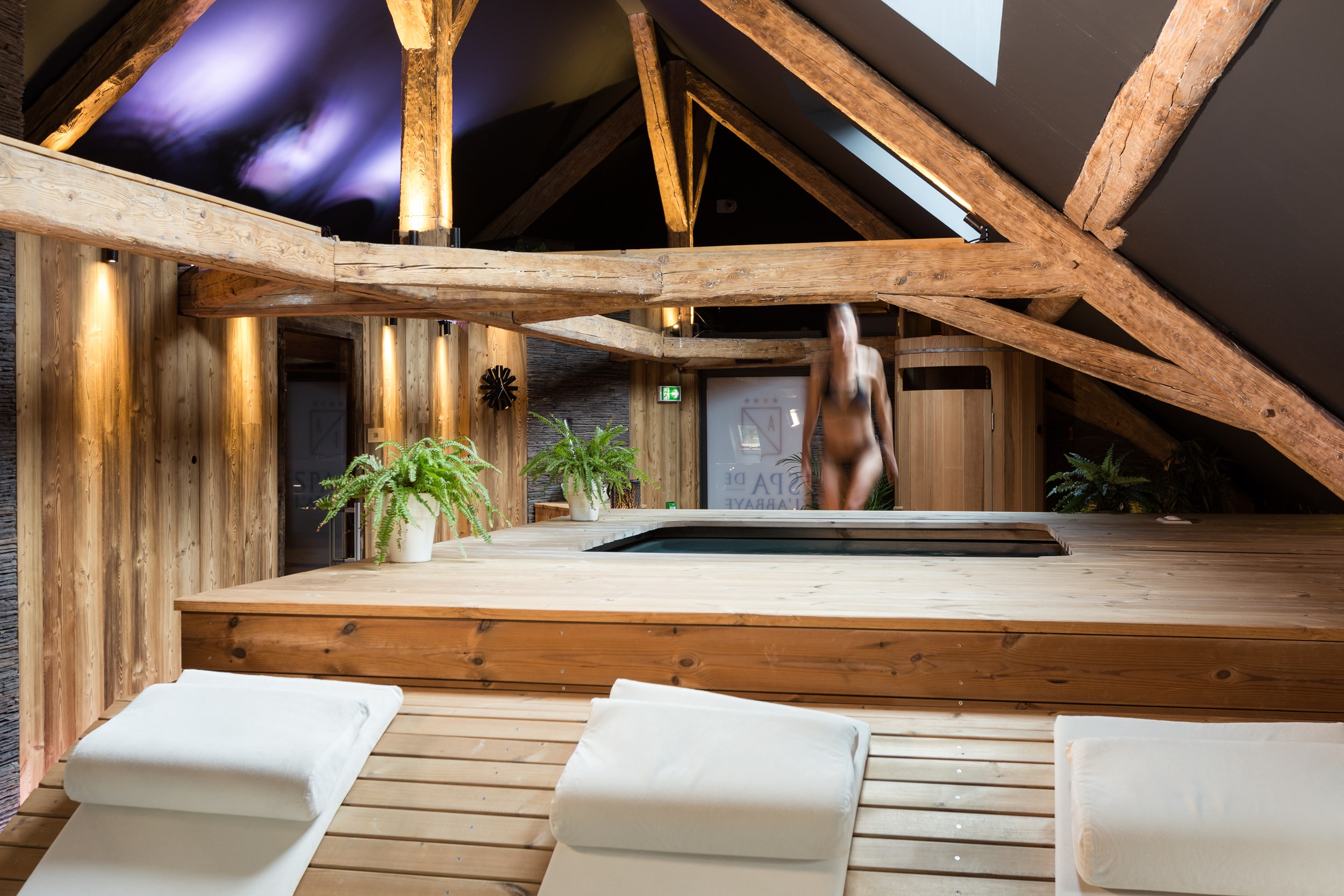 Aménagé sous les toits millénaires de l’Abbaye de Talloires, notre spa de 200 m² est un espace entièrement consacré au bien-être et à la détente. Lumières tamisées, teintes profondes, lignes épurées, poutres apparentes et matériaux nobles composent un décor boisé à l’atmosphère feutrée, propice au lâcher-prise et à la sérénité.